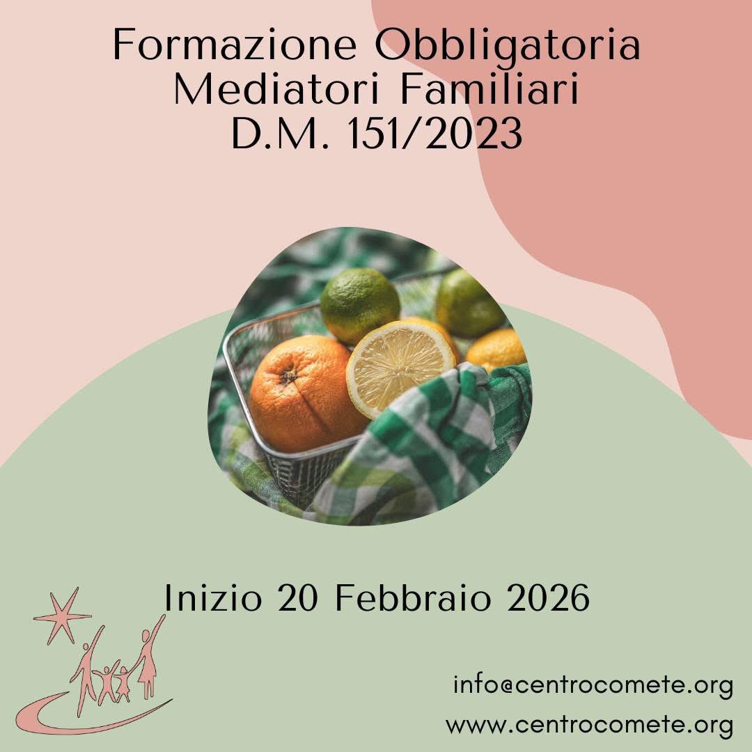 L’evento ha ottenuto 8 crediti formativi AIMS con prot. n 95 ac 151 2025 del 20/10/2025 per la frequenza all'intero percorso laboratoriale. Per info e iscrizioni: info@centrocomete.org 336 671023 Oppure visita la pagina https://www.centrocomete.org/project/laboratori-di-aggiornamento-professionale-continuo-per-mediatori-familiari/ ...