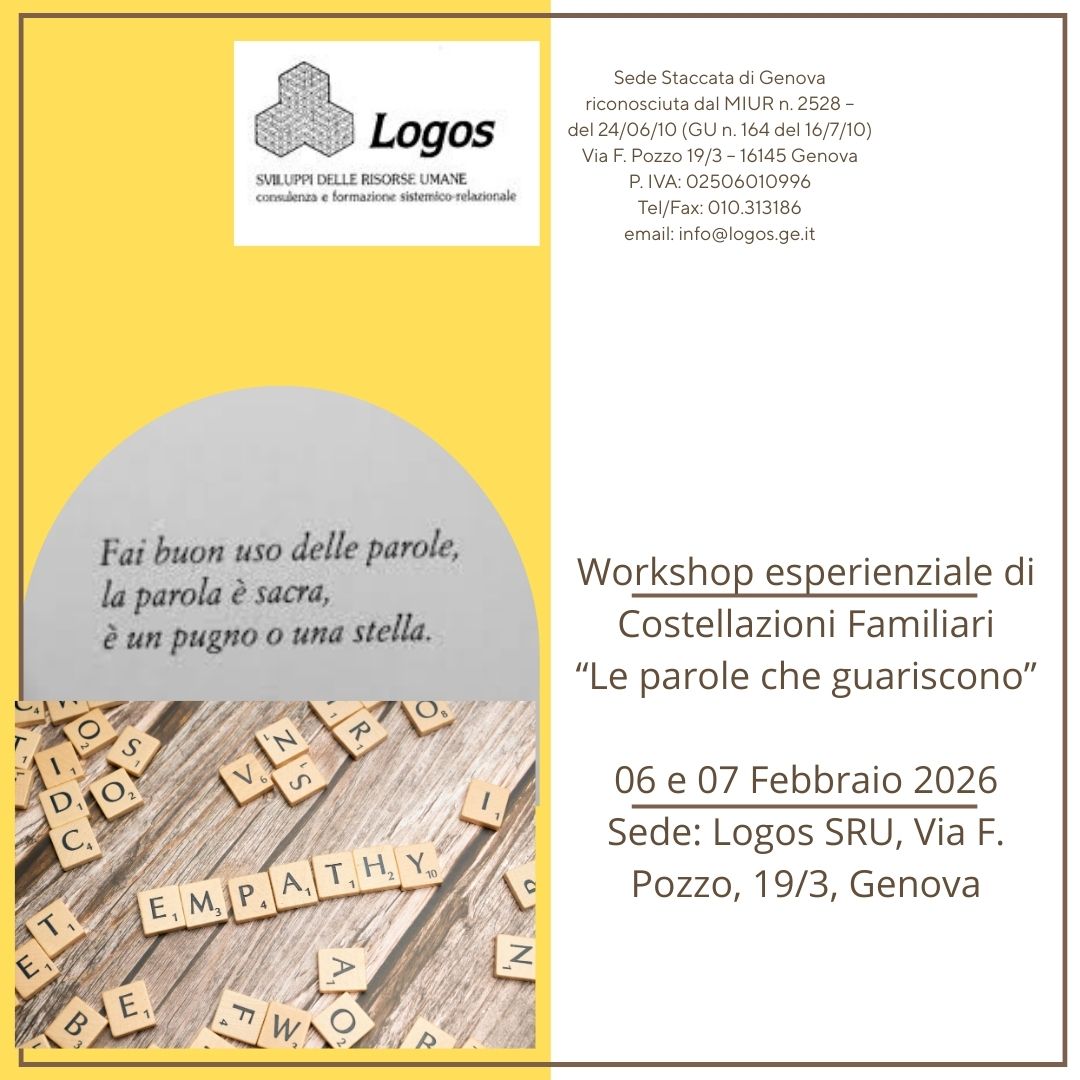 L’evento ha ottenuto 9 crediti formativi A.I.M.S. con prot. n. 110 ac./2025 del 16/12/2025 Sede: Logos SRU, Via F. Pozzo, 19/3, Genova Trainer: Dott. Stefano Cotugno, (Trento) Orario delle giornate: venerdì 06/02 ore 15.00 – 18.30; sabato 07/02 ore 9.30 – 17.30. Iscrizioni: presso la segreteria di LO...