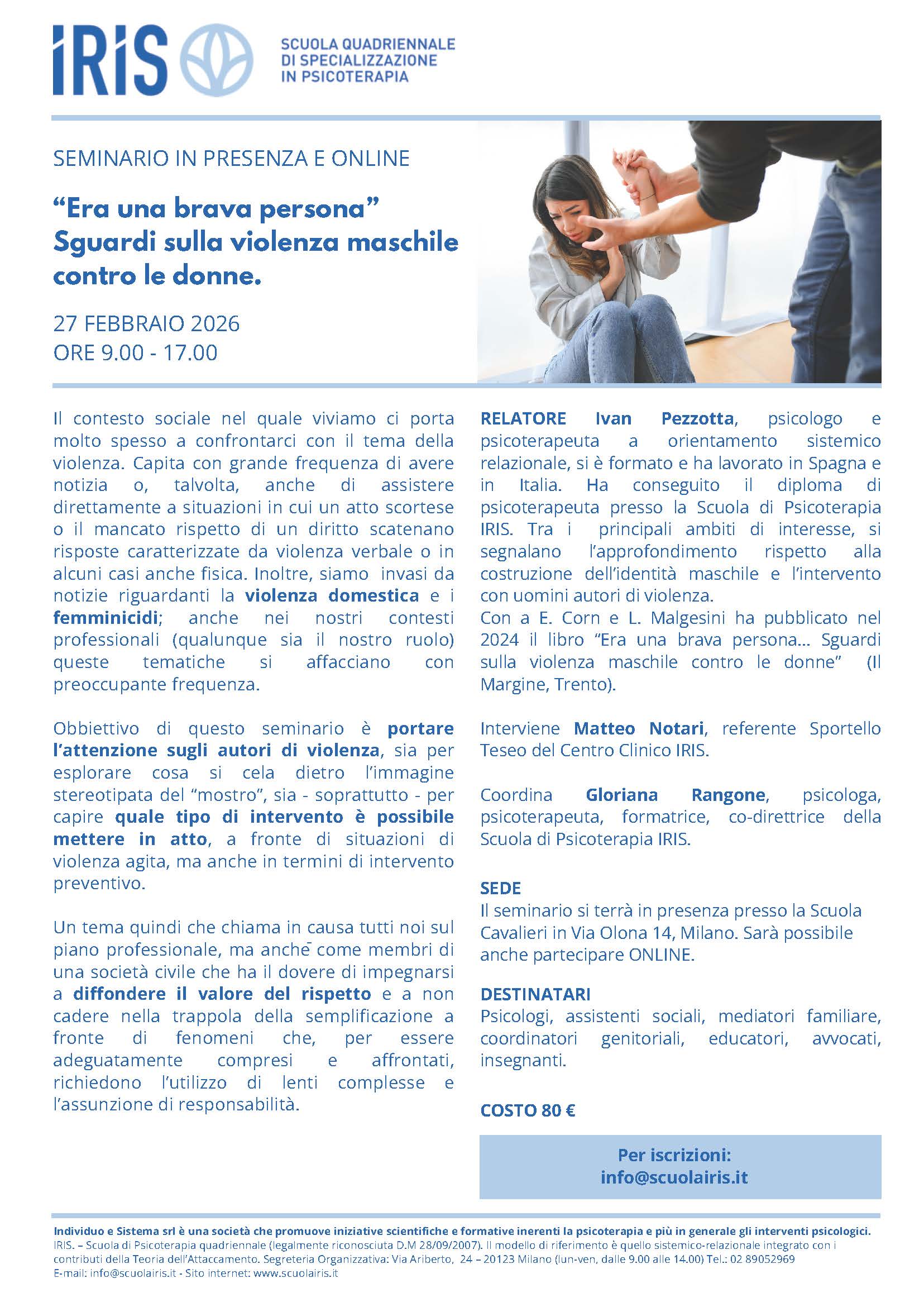 L’evento ha ottenuto 6 crediti formativi AIMS con prot. n 12 ac 2026 del 01/02/2026 Per iscrizioni: info@scuolairis.it