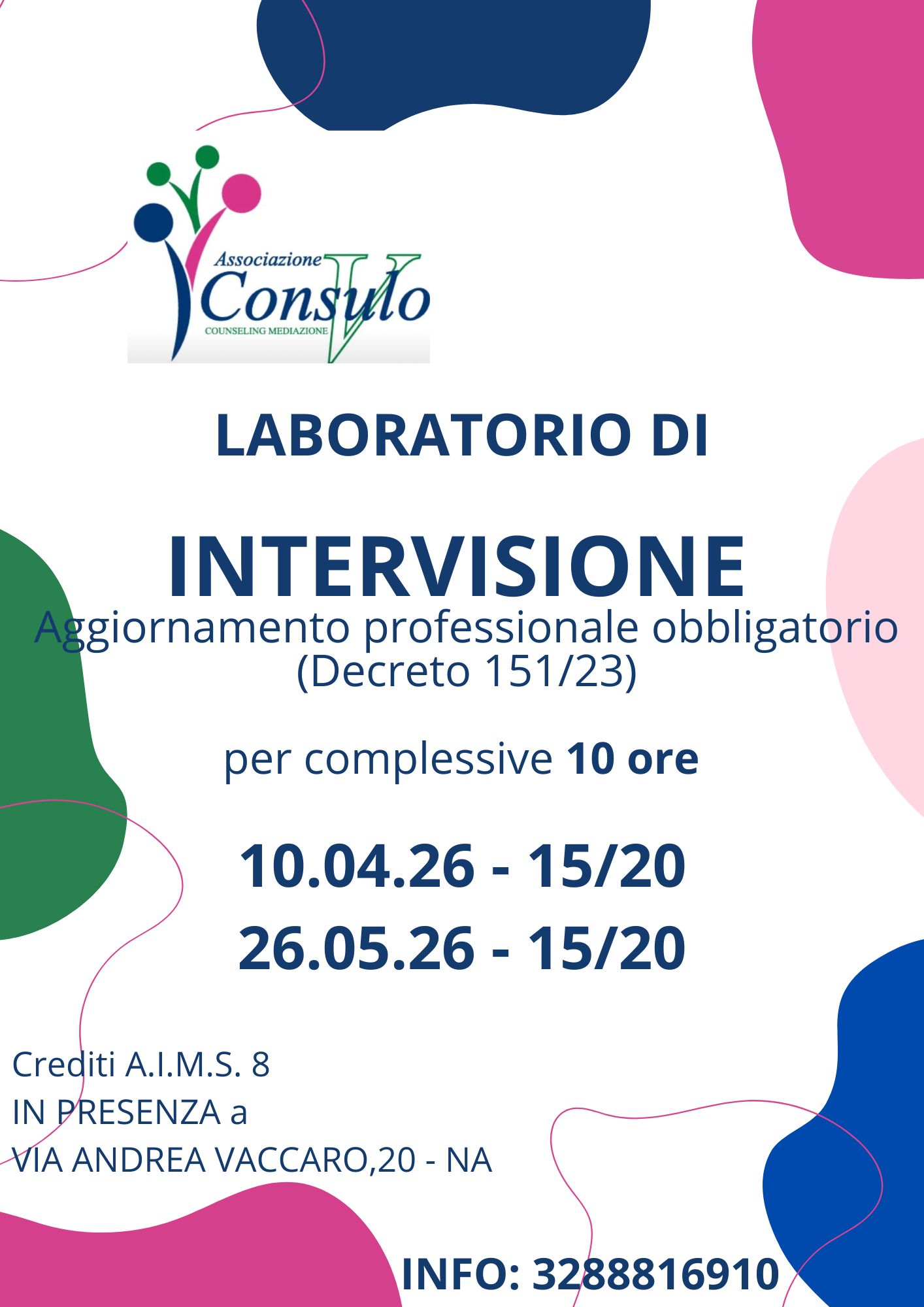 COD 3926 - Laboratorio di intervisione aggiornamento professionale obbligatorio (DM 151/23)